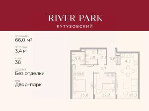 Продается 2-к квартира площадью 66.0 кв.м. на 38-м этаже в жилом комплексе премиум-класса River Park Кутузовский в Башне Amber Tower