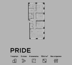 В премиальном жилом квартале PRIDE продается 4-комнатная квартира в 1 корпусе, на 3 этаже, в секции 1. Её общая площадь составляет 126.6 м². Пространство включает 3 уютные спальни 14,4 м², 15 м², 19,3 м², просторную кухню-гостиную 35,7 м² и 2 ванные комнаты 5,7 м² и 9,6 м².