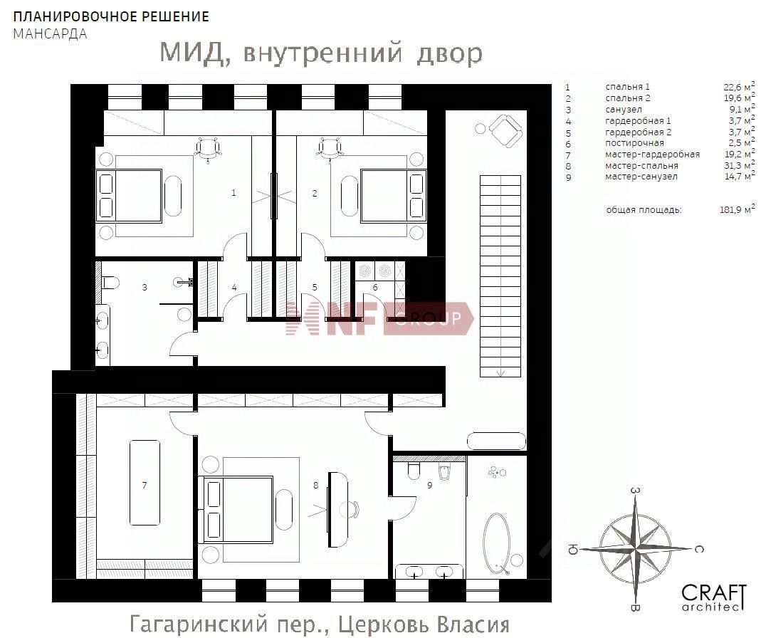 Пространство квартиры оптимально для большой семьи возможно организовать просторную гостиную, отдельную кухню, шесть уютных спален, три-четыре ванные комнаты, гардеробные.