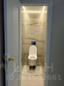 Туалетная комната (с теплым полом) выдержана в одном стиле с ванной комнатой (керамогранит онинс), оснащена подвесным унитазом с инсталляцией, трехрежимовой подсветкой и вытяжкой. В закрытой нише расположен бойлер на 30 литров с помощью которого вы никогда не останетесь без горячей воды.