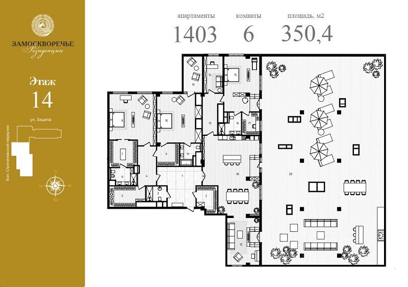 Продаются самые большие апартаменты с террасой в ЖК Резиденции Замоскворечье. Площадь апартамента 350,4 м2 терраса 450 м2 !!! На последнем 14 этаже.