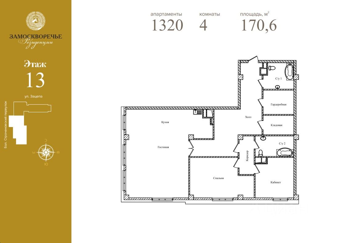 Продаются 3-комн. апартаменты площадью 170,6 кв.м на 13 этаже 14 этажного здания. Потолок 4 метра. 6 окон на Юг и Запад. Вид перспективный, открытый.