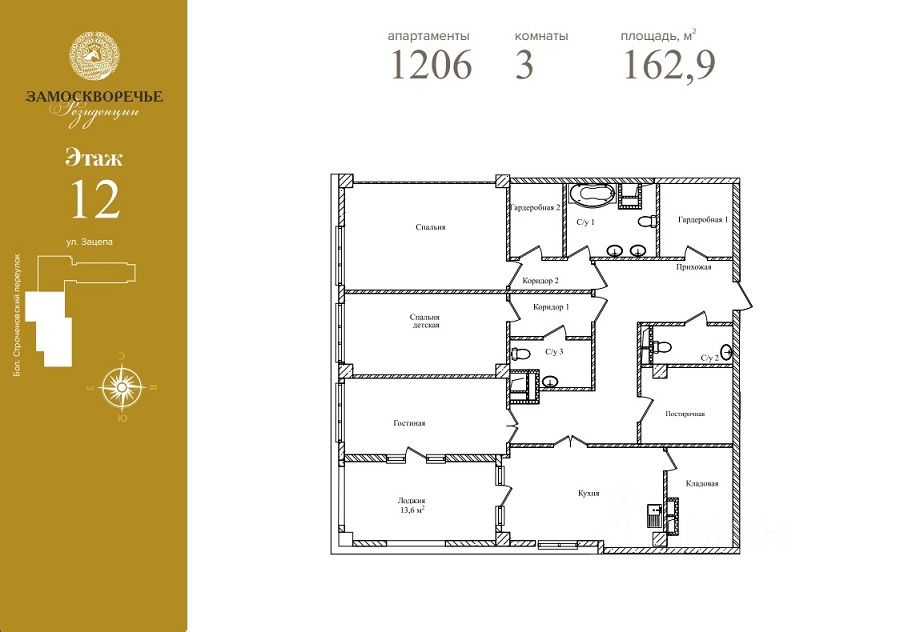 Продаются 3-комн. апартаменты площадью 162,9 кв.м., балкон 13,2м2. 12 этаж 14-этажного здания. С панорамным видом на Москву. Потолок 4 метра.