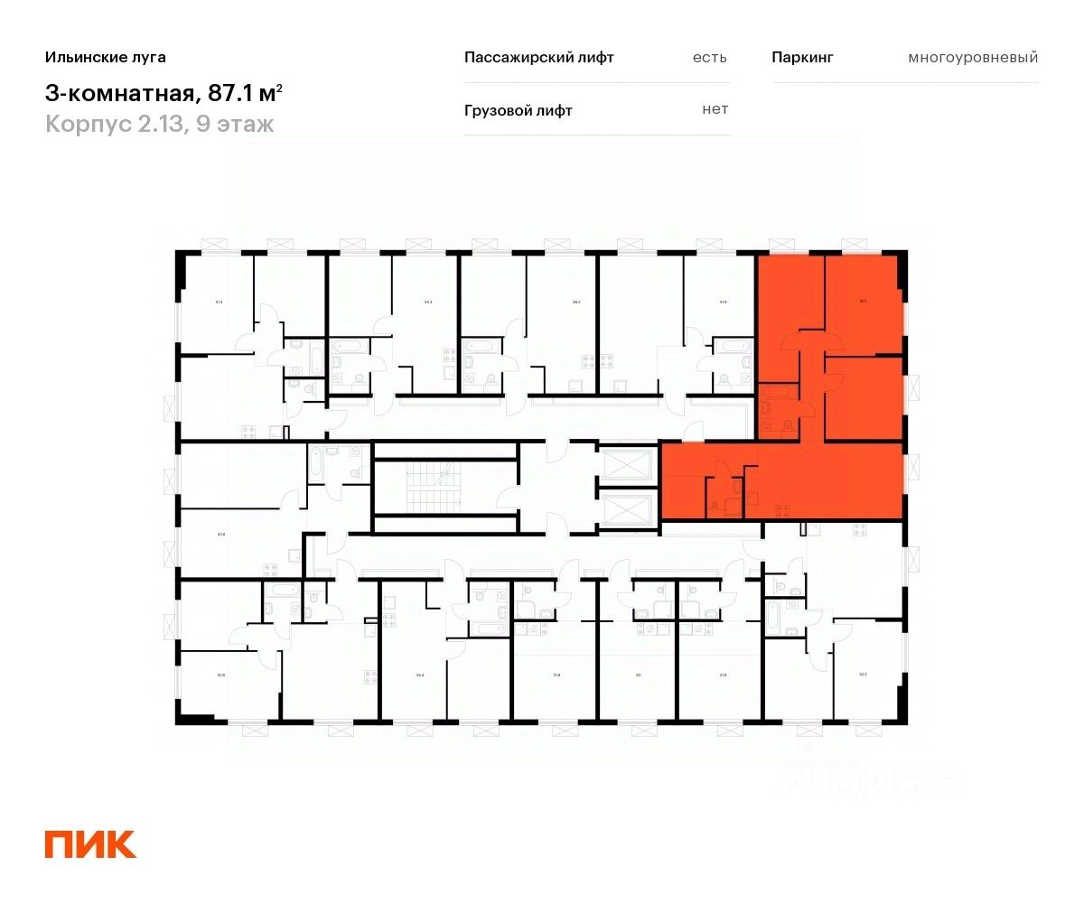 Продаётся 3-комн. квартира площадью 87,1 кв.м на 9 этаже 9 этажного дома (Корпус 2.13, Секция 3) проекта ПИК Ильинские луга. Светлый просторный подъезд на уровне земли, функциональная планировка, большие окна, c отделкой.