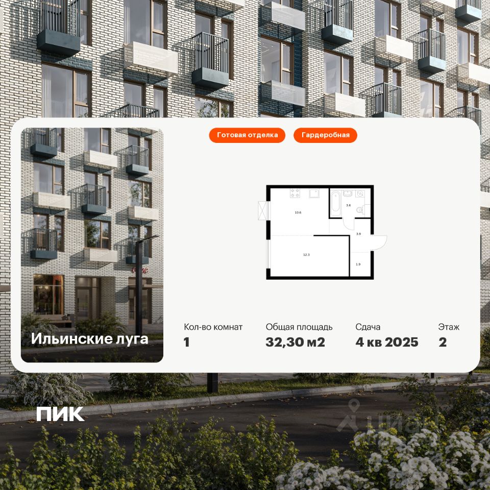 Продаётся 1-комн. квартира площадью 32,3 кв.м на 2 этаже 9 этажного дома (Корпус 2.13, Секция 1) проекта ПИК Ильинские луга. Светлый просторный подъезд на уровне земли, функциональная планировка, большие окна, c отделкой.
