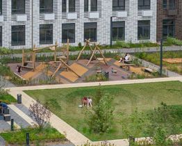 В "Ильинских лугах" строятся только девятиэтажные дома — такая архитектура соответствует спокойной жизни за городом. В каждом дворе-парке есть места для отдыха, детские и спортивные площадки. А ещё, здесь уже открыт большой PlayHub "Гравити" — современное игровое пространство с космической тематикой, холмами, зонами для игр и отдыха жителей любого возраста.