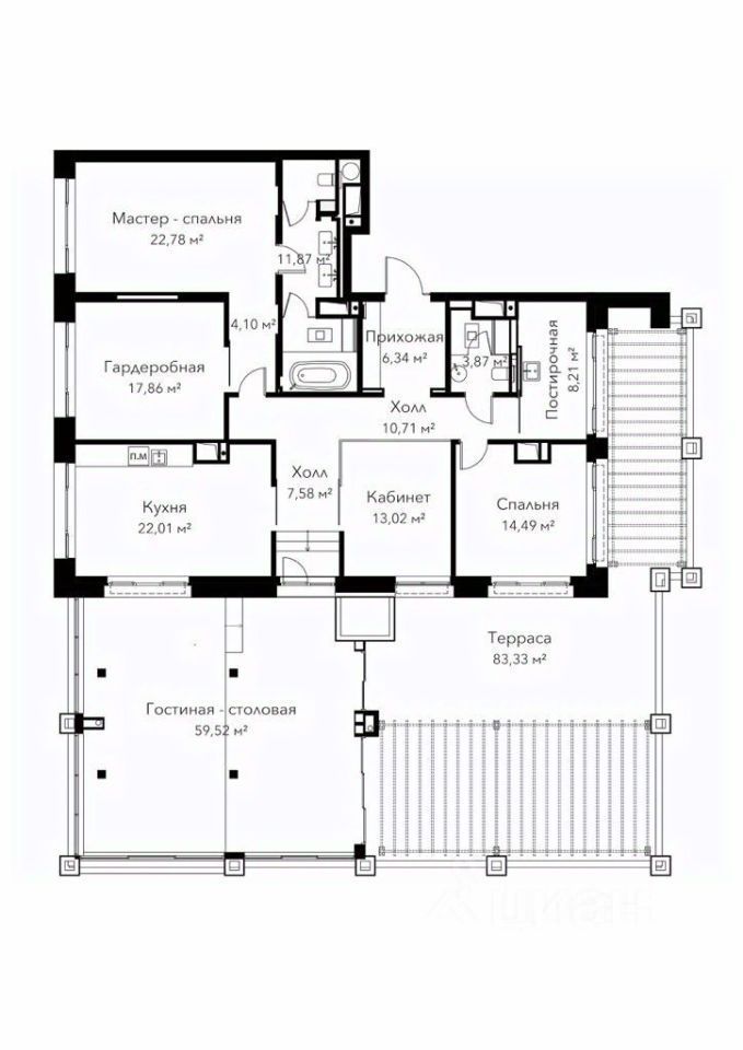 Метраж тёплого контура квартиры 201.5 кв м + метраж террасы 83 кв м (указан в общей площади пентхауса с коэффициентом 0.5)