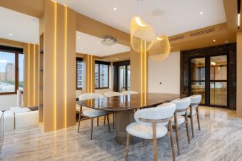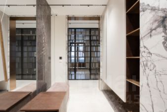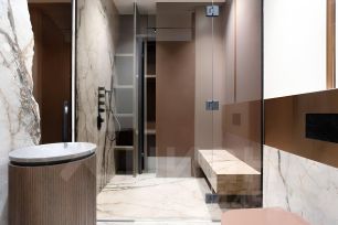 Дизайнерская отделка с использованием премиальных материалов (дерево, камень). Квартира полностью меблирована (ведущие европейские фабрики), оборудована встроенной бытовой техникой, дорогой сантехникой.