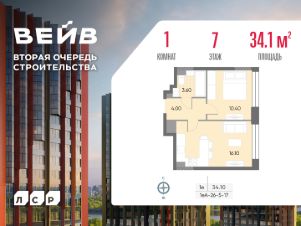 Продается 1-комнатная квартира общей площадью 34.1 кв. метров на 7 этаже жилого комплекса ВЕЙВ. Комплекс располагается на юге Москвы в районе Москворечье-Сабурово. В пешей доступности расположены станция МЦД "Москворечье" и станция метро "Борисово". Для автомобилистов есть удобное сообщение с Каширским шоссе.