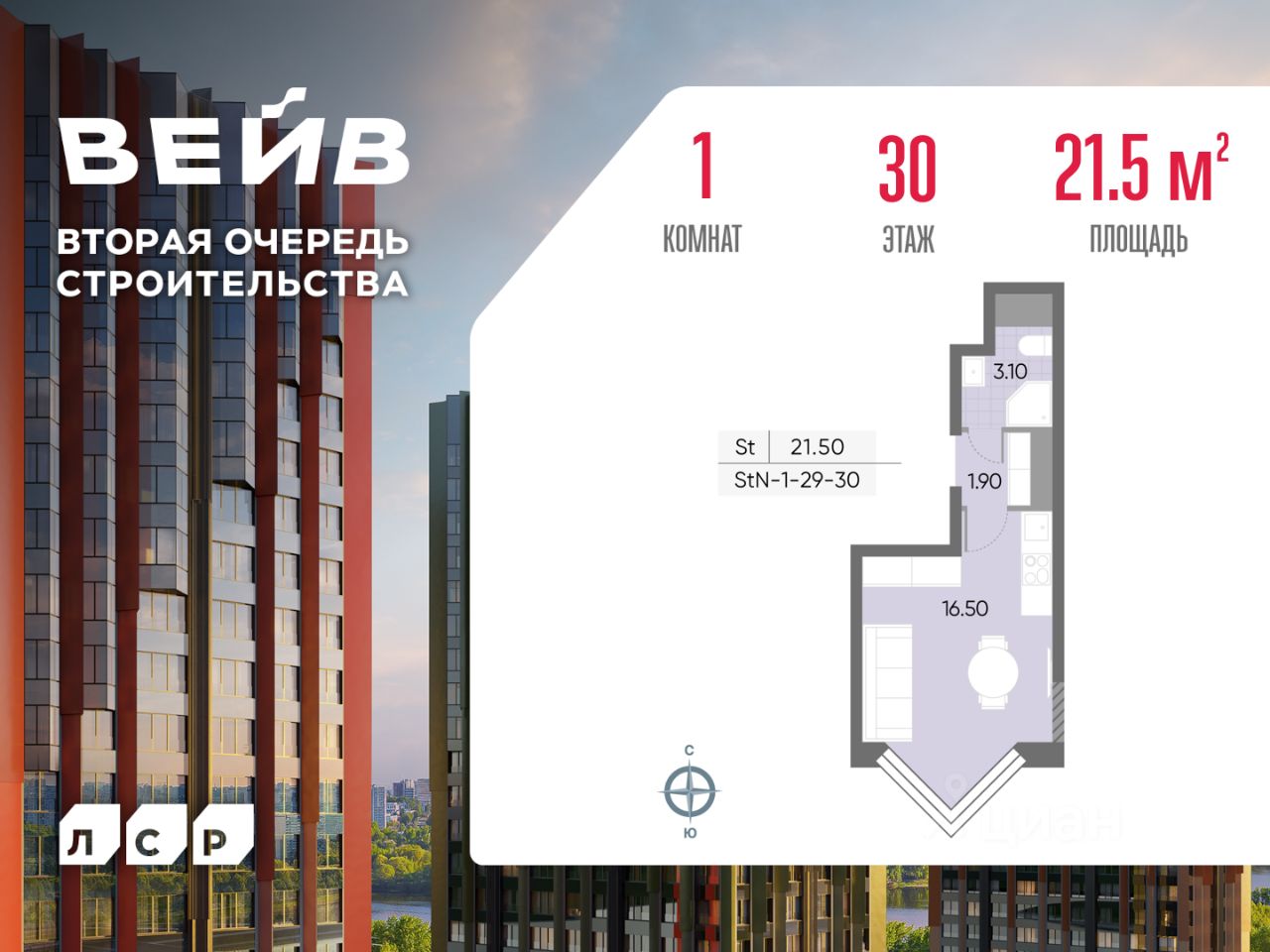 Продается квартира-студия общей площадью 21.5 кв. метров на 30 этаже жилого комплекса ВЕЙВ. Комплекс располагается на юге Москвы в районе Москворечье-Сабурово. В пешей доступности расположены станция МЦД "Москворечье" и станция метро "Борисово". Для автомобилистов есть удобное сообщение с Каширским шоссе.