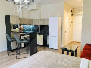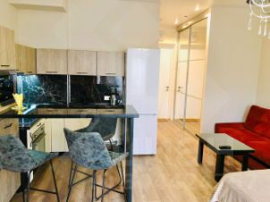 Продаётся апартамент площадью 33,5 квадратных метра. Полностью отремонтированная квартира обставлена качественной мебелью и оснащена необходимой техникой.