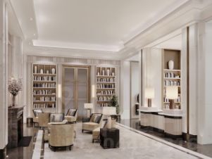 Архитектурное бюро Олега Клодта разработало дизайн общественных пространств ФАЙВ ТАУЭРС: гранд-лобби, камерную библиотеку c камином и лифтовую зону. Все необходимые сервисы сосредоточены на первых этажах небоскрёба: кафе, винотека, салон красоты, фитнес и детский клуб. Приватный Sky Club 49 — респектабельный лаундж с открытой террасой и ограниченным доступом на 49 этаже — только для резидентов.