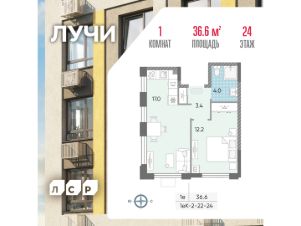 Продается 1-комнатная квартира общей площадью 36.6 кв. метров на 24 этаже жилого комплекса Лучи. Комплекс располагается в 5 минутах ходьбы от станции метро "Солнцево" и в шаговой доступности от железнодорожной станции "Новопеределкино". Жилой комплекс комфорт-класса представляет собой 9 монолитных и панельных многоквартирных домов высотой от 6 до 25 этажей. Комплекс Лучи благоустроен дворами без автомобилей, современными детскими и спортивными площадками и отапливаемыми подземными паркингами. В уютном районе Солнцево, вокруг современного жилого комплекса, вас ждет настоящий комфорт и удобство. Здесь находятся все необходимые социальные объекты: школы, детские сады, культурные центры, магазины и развлекательные заведения. Вы сможете легко пополнить запасы продуктов в ближайших магазинах.