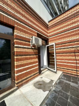 В помещении ДВА ВХОДА. ОДИН С ОБЩЕГО КОРИДОРА КОМПЛЕКСА АПАРТАМЕНТОВ, ВТОРОЙ ОТДЕЛЬНЫЙ С УЛИЦЫ ПО ВИНТОВОЙ ЛЕСТНИЦЕ. Свой собственный выход/вход, балкон!Уникальность именно этого апартамента в свободной, просторной, эргономичной,необычной планировке с фактически собственной террасой и отдельным входом!