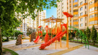 Главное о локации. Dominion расположен на Ломоносовском проспекте, рядом с широкими проспектами и зелёными бульварами. Архитектура играет современными объёмами и крупным остеклением, фасады читаются динамичными линиями и выразительными ритмами. Входные группы — натуральный камень, высокий потолок, мягкий свет и стойка ресепшн. Внутри квартала устроили двор без машин с дорожками и тихими зонами для отдыха. На первых этажах работают повседневные сервисы. Для автомобилей предусмотрен многоуровневый паркинг со спуском на лифте.