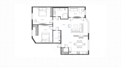 Функциональная планировка: кухня-гостиная со столовой зоной, две спальни, два санузла, кабинет, кладовая, холл.