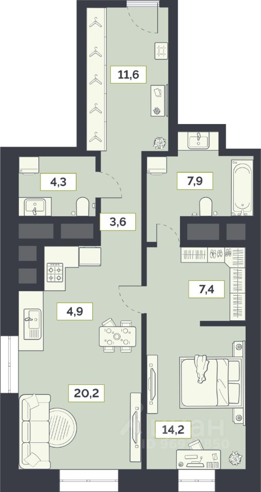 Общая площадь74,1 м²