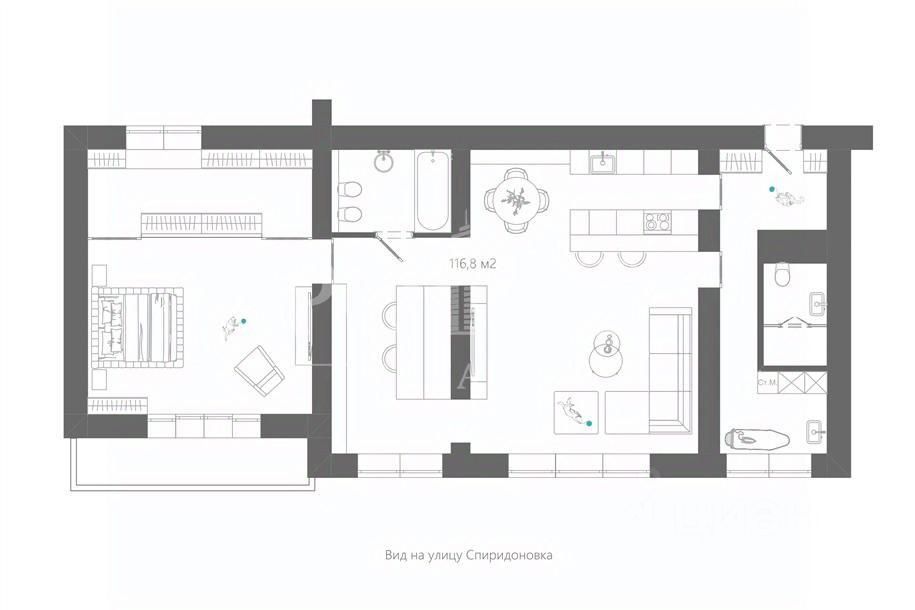 Функциональная планировка: кухня-гостиная, спальня со своим санузлом, совмещенный санузел (стены мрамор, подогрев пола, бойлер), постирочная, прихожая, панорамная открытая лоджия.