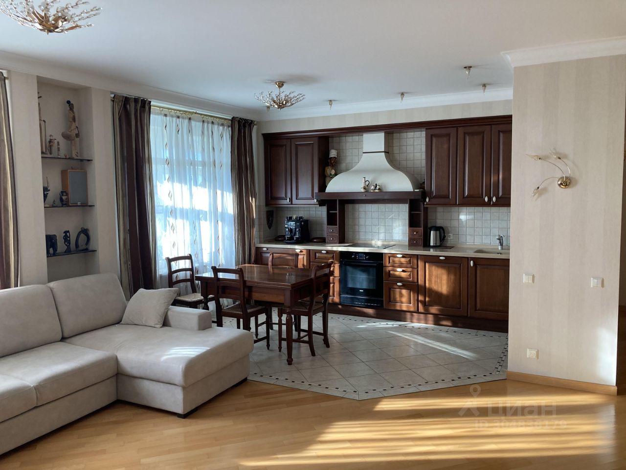 Просторная 4-х комнатная квартира общей площадью 127.2 кв.м с потолками высотой 3м включает в себя большую гостиную объединенную с кухней и 3 спальни.
