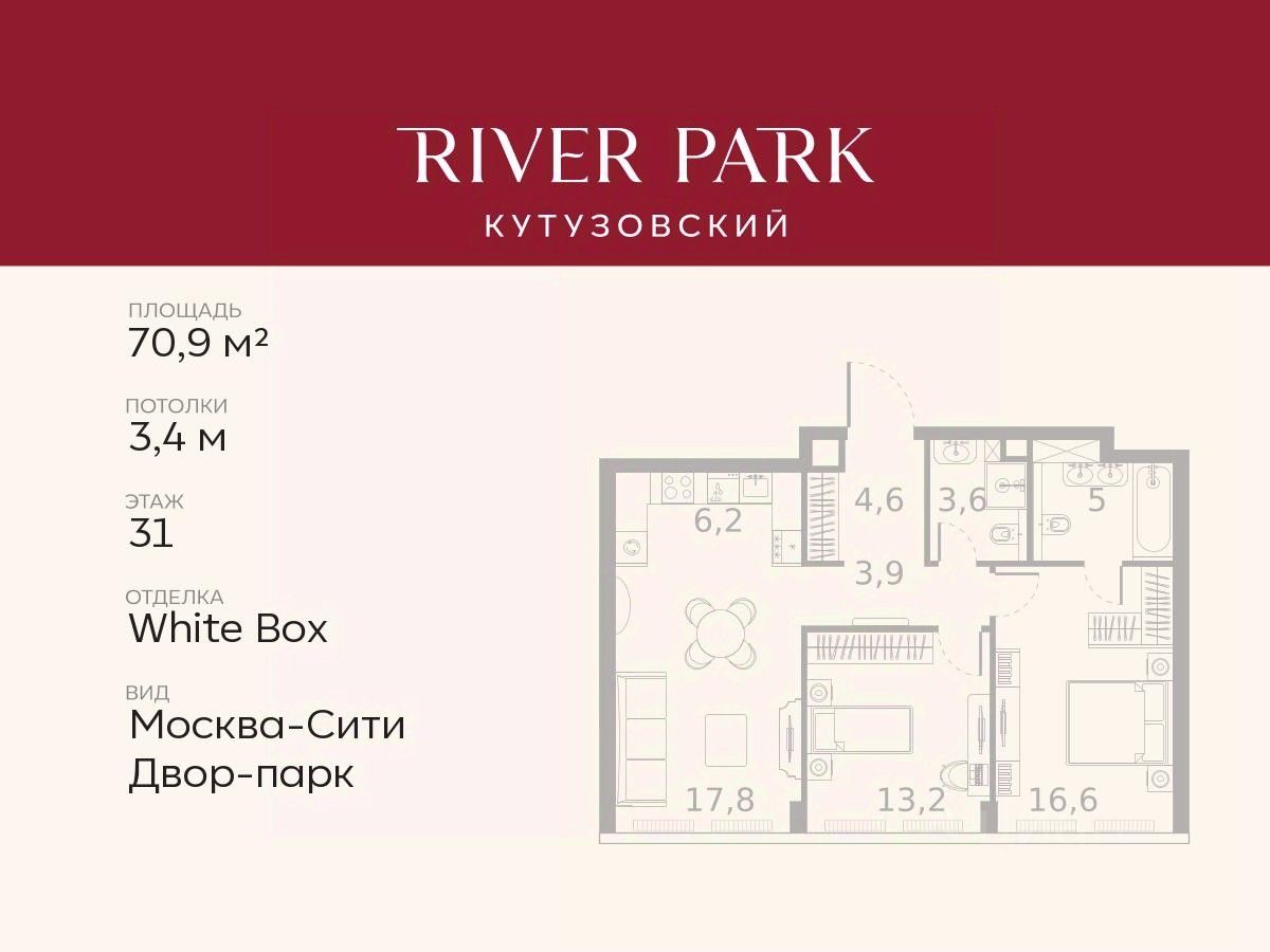 Продается 2-к квартира площадью 70.9 кв.м. на 31-м этаже в жилом комплексе премиум-класса River Park Кутузовский в Башне Emerald Tower
