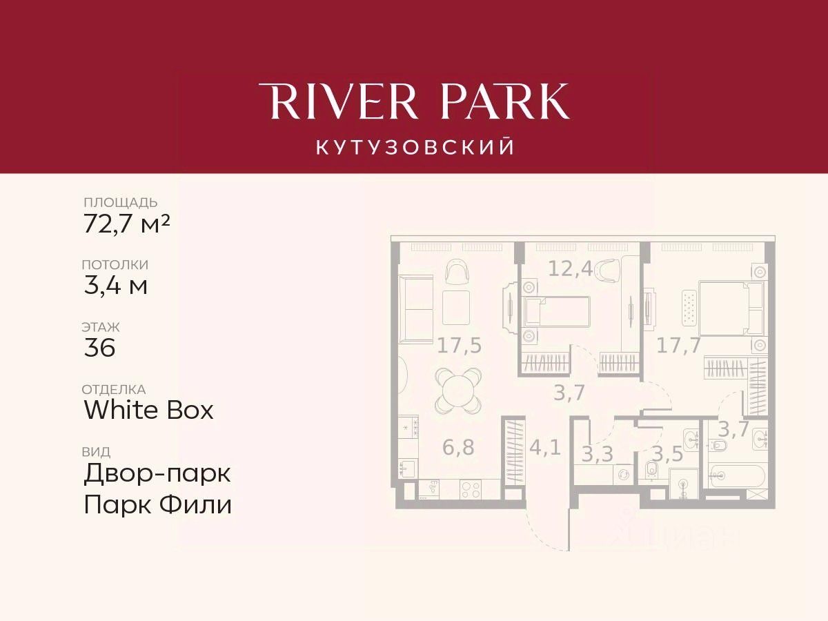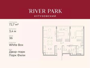 Продается 2-к квартира площадью 72.7 кв.м. на 36-м этаже в жилом комплексе премиум-класса River Park Кутузовский в Башне Emerald Tower