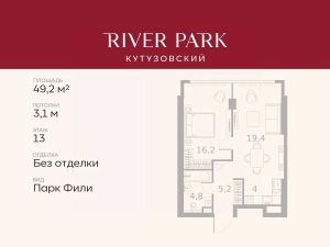 Продается 1-к квартира площадью 49.2 кв.м. на 13-м этаже в жилом комплексе премиум-класса River Park Кутузовский в Башне Amber Tower