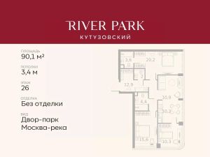 Продается 3-к квартира площадью 90.1 кв.м. на 26-м этаже в жилом комплексе премиум-класса River Park Кутузовский в Башне Amber Tower