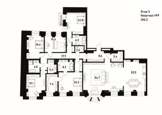 К продаже предлагается квартира площадью 263.1 кв.м. в тихом переулке исторического центра столицы.