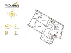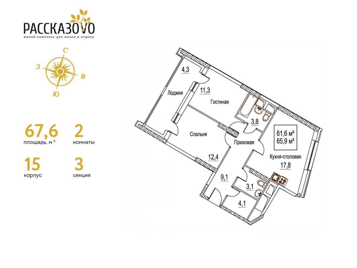 Продается 2-комнатная квартира в ЖК Рассказово на 6 этаже. Общая площадь квартиры составляет 66,6 кв.м. Квартира без отделки.