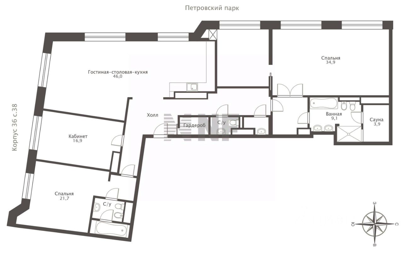 Окна ориентированы на 2 стороны: открывается вид на Петровский парк, стадион "Динамо" и в благоустроенный двор.
