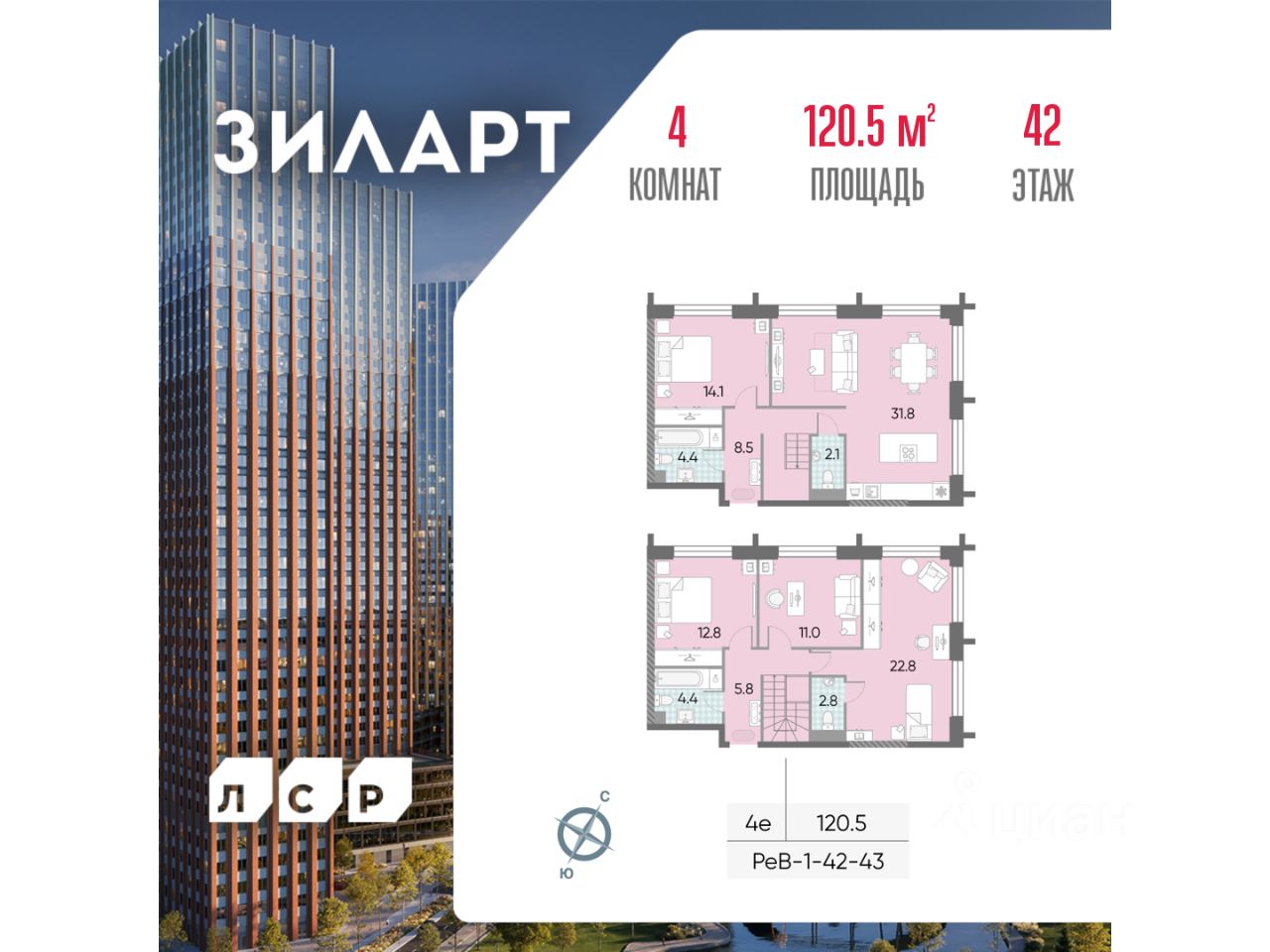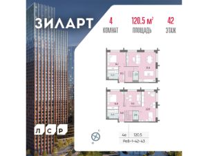 Продаётся 4-комнатная квартира в доме ЗИЛАРТ СПАРК общей площадью 120.5 кв. метров на 42 этаже.