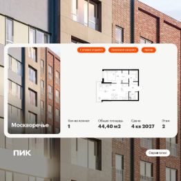 Продаётся 1-комн. квартира площадью 44,4 кв.м на 2 этаже 17 этажного дома (Корпус 1.2, Секция 3) проекта ПИК Москворечье. Светлый просторный подъезд на уровне земли, функциональная планировка, большие окна, c отделкой.