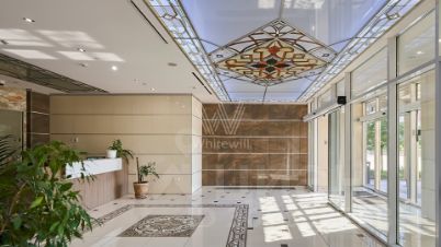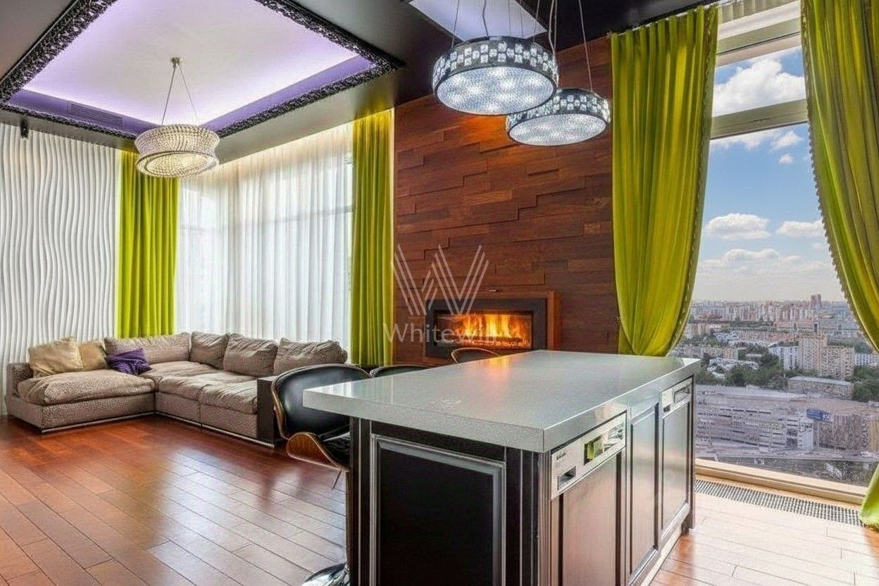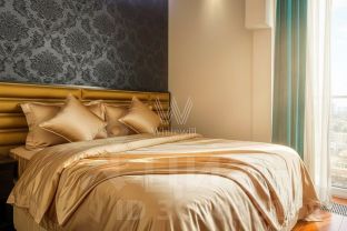 Интерьеры украшены рельефными панелями из натурального дерева, элементами декора из мрамора, эксклюзивными люстрами и светильниками из Италии. Продуманы разные световые сценарии освещения для создания уюта и ощущения приватности. Функциональная планировка: кухня-гостиная с высотой потолков 4,2 метра, мастер-спальня с собственной гардеробной, ванной и выходом на балкон, гостевой санузел, холл. Благодаря панорамным окнам "в пол" пространство наполнено естественным светом и теплом.