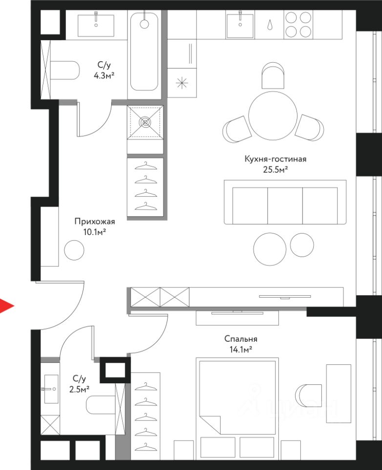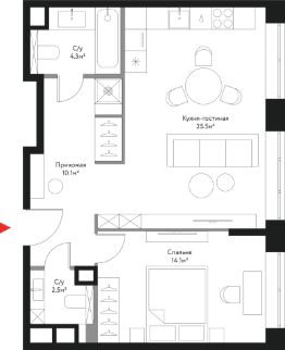Продаётся 2-комнатная квартира в сданном доме (Лермонтовская, 1 (Корпус 2)), срок сдачи: I-кв. 2024, общей площадью 56.5 кв.м., на 1 этаже.