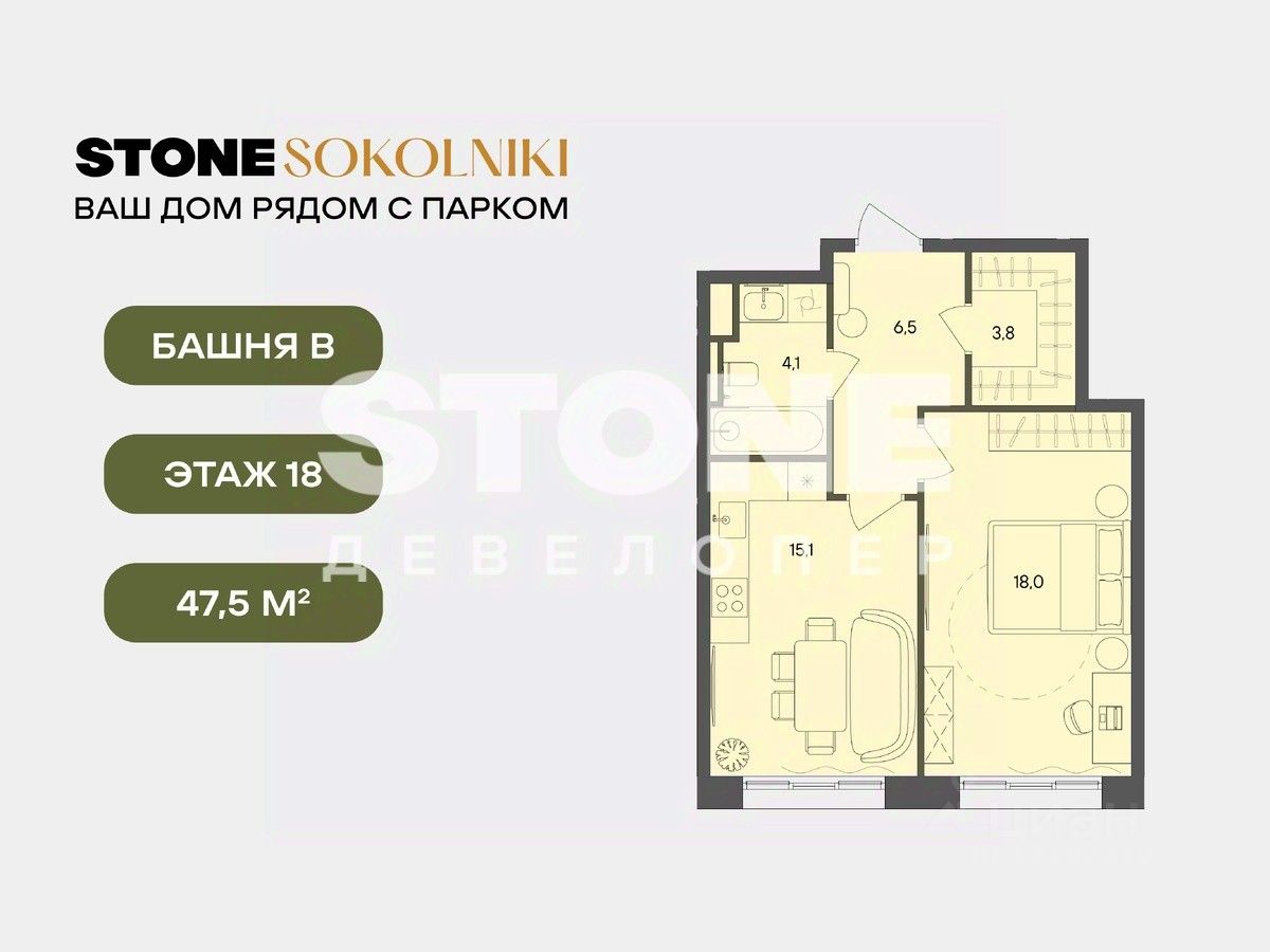Старт продаж квартир в ЖК STONE SOKOLNIKI от девелопера STONE. В продаже функциональная и светлая односпальная квартира с кухней-гостиной и одной спальней для реализации любого дизайн-решения, идеально подходящая молодым парам и небольшим семьям. Современная архитектура проекта органично вписана в городскую среду. Концепция проекта разработана архитектурным бюро WALL Проект состоит из трех разновысотных башен высотой в 33, 28 и 24 этажа с чистой геометрией и увеличенной площадью остекления, которая позволит насладиться городской панорамой и видами на парк "Сокольники". Транспортная доступность - 10 мин. пешком до метро и БКЛ "Сокольники" и "Электрозаводская" - 12 мин. пешком до парка Сокольники - 10 мин. пешком до станции МЦД-3 "Митьково", которая позволит комфортно добираться в центр города и за его пределы Инфраструктура: В каждой входной группе предусмотрены помещения для временного хранения велосипедов, лапомойка, гостевой санузел, а также комната матери и ребенка. А колясочные появятся на каждом этаже - ведь это самое удобное решение для детей и их родителей. Планировочные решения: Планировки квартир в STONE Sokolniki создавались с учетом разнообразия современных сценариев жизни в городе. В проекте предусмотрены просторные кухни-гостиные, изолированные спальни с мастер-блоком, планировки для семей со взрослыми детьми, с двумя детьми разных возрастов. Благодаря грамотному зонированию квартир можно насладиться и временем с семьей, и уединением или, наоборот, устроить вечеринку вместе с друзьями. - Квартиры от 28 до 135 кв. м. Детский сад во дворе дома: Девелопер STONE осуществляет самостоятельный поиск оператора для детского сада, так как курирует наполнение проекта. На этапе финальной готовности будет выбран лучший оператор, отвечающий запросам качества и цены. Во всех своих проектах девелопер берет на себя ответственность за сдачу части помещений. Удобное хранение: В проекте STONE Sokolniki предусмотрена максимальная обеспеченность кладовыми. Хранения велосипедов в подземном паркинге возможно в зимний период, а летом будет организовано временное хранение на улице. Колясочные есть на каждом этаже всех трех жилых башен. - Колясочные на этаже - Кладовые для хранения Безопасная собственная территория дома, сим и паркинг: Внутри двора комфортно перемещаться пешком, все въезды в паркинг организованы по внешнему периметру. Велосипеды, самокаты и электросамокаты, детские беговелы и коляски - в приоритете, для всех колесных видов транспорта продуманы удобные маршруты движения и варианты хранения в разные сезоны. STONE - девелопер коммерческой и жилой недвижимости классов бизнес и премиум в Москве с 19-летним опытом. С 2022 года занимает лидирующую позицию на офисном рынке (рейтинг РБК). Сегодня в портфеле девелопера представлено 3 млн кв. м построенных, строящихся и проектируемых объектов, из которых более 1 млн кв. м находятся в стадии строительства. Компания имеет самый масштабный проектный портфель офисной недвижимости класса А на москов