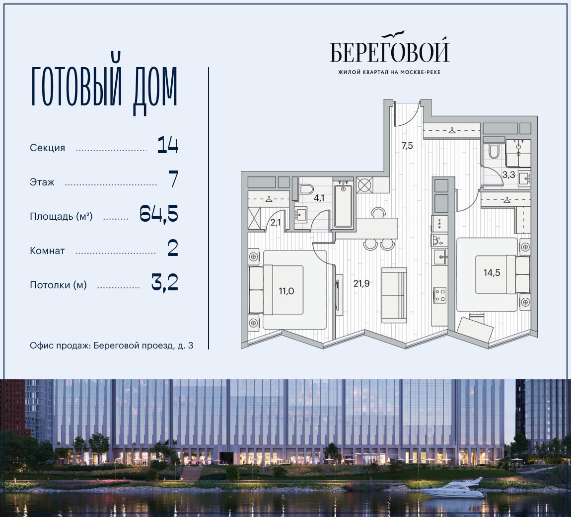 Река. Парк. Сити. Готовый дом в идеальном месте. Продается 2-комнатная квартира на 7 этаже с панорамным остеклением и видом на Береговой пр-д.
