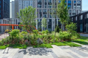 - Развитая инфраструктура. На территории комплекса  круглосуточная охрана, консьерж в каждой секции, видеонаблюдение,  пропускная система въезда, детская и спортивная площадка, зоны для  прогулок и отдыха. Жильцы и гости могут с комфортом пользоваться: фитнесс клубом, студией йоги, обучающими курсами, салонами бытовых услуг (косметология, салон красоты и т.д.)