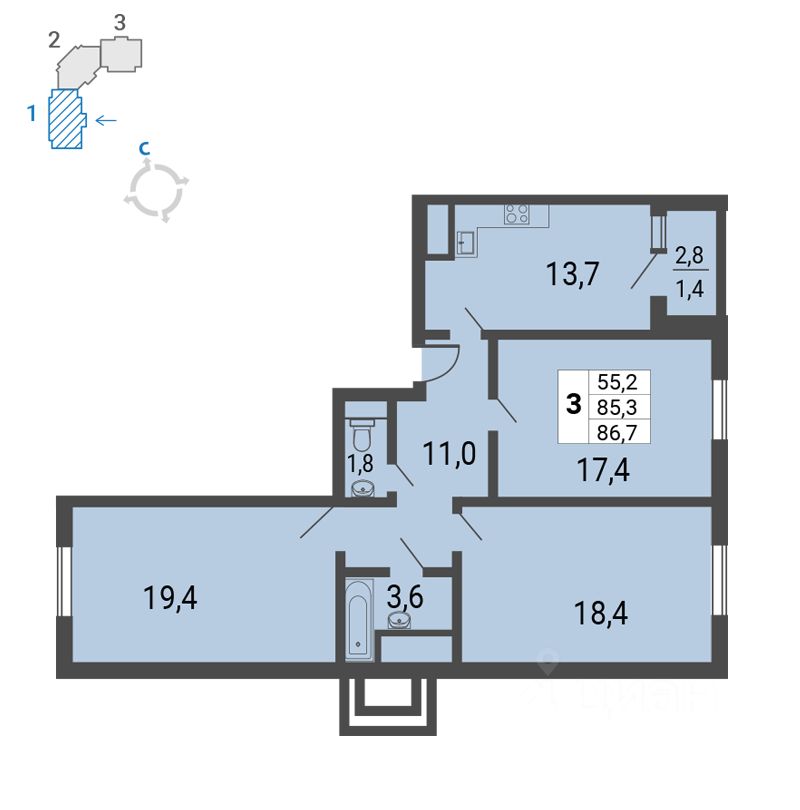 55,2 м²