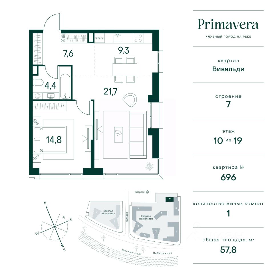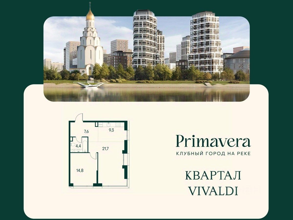 Клубный город на реке Primavera — это респектабельный проект премиум-класса на первой береговой линии Москвы-реки в экологически безупречном районе — Покровское-Стрешнево. Под панорамными окнами квартир расположился собственный экопарк, площадью 12 гектаров с сетью прогулочных дорожек, оборудованный детскими и спортивными площадками, а за ним набережная с собственным пляжем и зонами отдыха. Клубный город на реке Primavera предлагает впечатляющий выбор планировок для любого жизненного сценария: от просторных однокомнатных квартир до пентхаусов и квартир с видовыми террасами или патио. Выбирайте из 120 вариантов эргономичных планировок стандартного и евроформата. В проекте доступны квартиры площадью от 40 до 209 м², в каждой из которых открываются непревзойденные виды на реку, а угол обзора составляет 270 градусов. Из дизайнерских лобби открывается панорамный обзор на зеленый благоустроенный двор. Статусное мебелирование, потолки высотой 6 м и комфортная лаунж-зона отсылают к стилистике высококлассных пятизвездочных отелей. В Primavera есть все, что может предложить мегаполис, здесь все сосредоточено вокруг вас и настроено на ваши желания: - Всестороннее детское развитие в паре шагов от дома: 4 школы, 8 детских садов, развивающие центры с кружками и секциями. - Комфорт мегаполиса на расстоянии приятной прогулки: супермаркеты, кафе, рестораны с верандами на крыше, салоны красоты, аптеки, компании сферы услуг, многофункциональный центр для шоппинга и развлечений. - Умный дом: автоматизированное бесконтактное управление основными системами доступа, инфраструктуры и безопасности через мобильное приложение и специальные метки. Клубный город на реке Primavera выгодно отличается близостью к природе, совмещенной с насыщенной инфраструктурой.