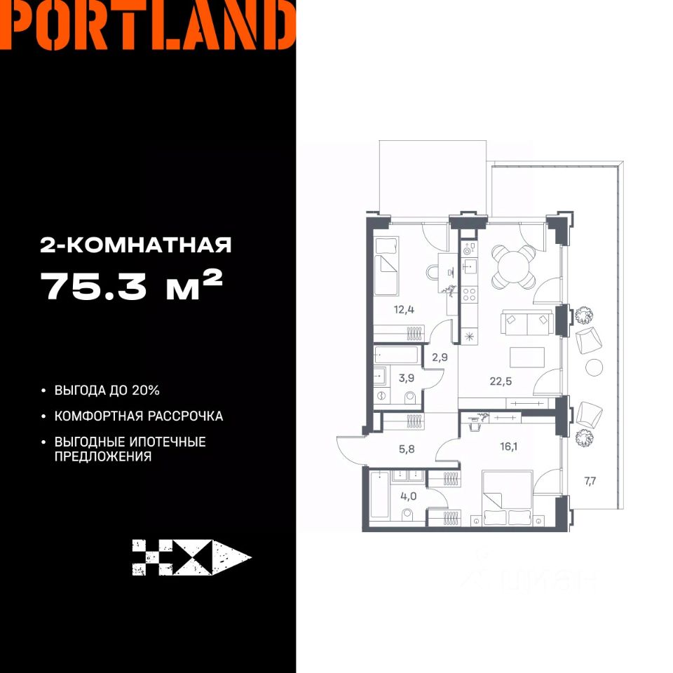Продаётся 2-к. квартира, 2 этаж в жилом комплексе бизнес-класса Portland от девелопера FORMA. ЖК расположен на берегу Москвы-реки в северной части района Печатники в акватории Южного речного порта.