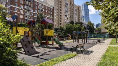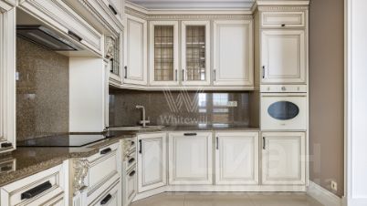 Видовая квартира с тремя спальнями общей площадью 104 м² в комплексе бизнес-класса "Обыкновенное чудо" в Раменках. Выполнена премиальная отделка в стиле современной классики с использованием высококачественных и натуральных материалов. Установлен кухонный гарнитур со встроенной бытовой техникой Smeg, Kuppersberg.