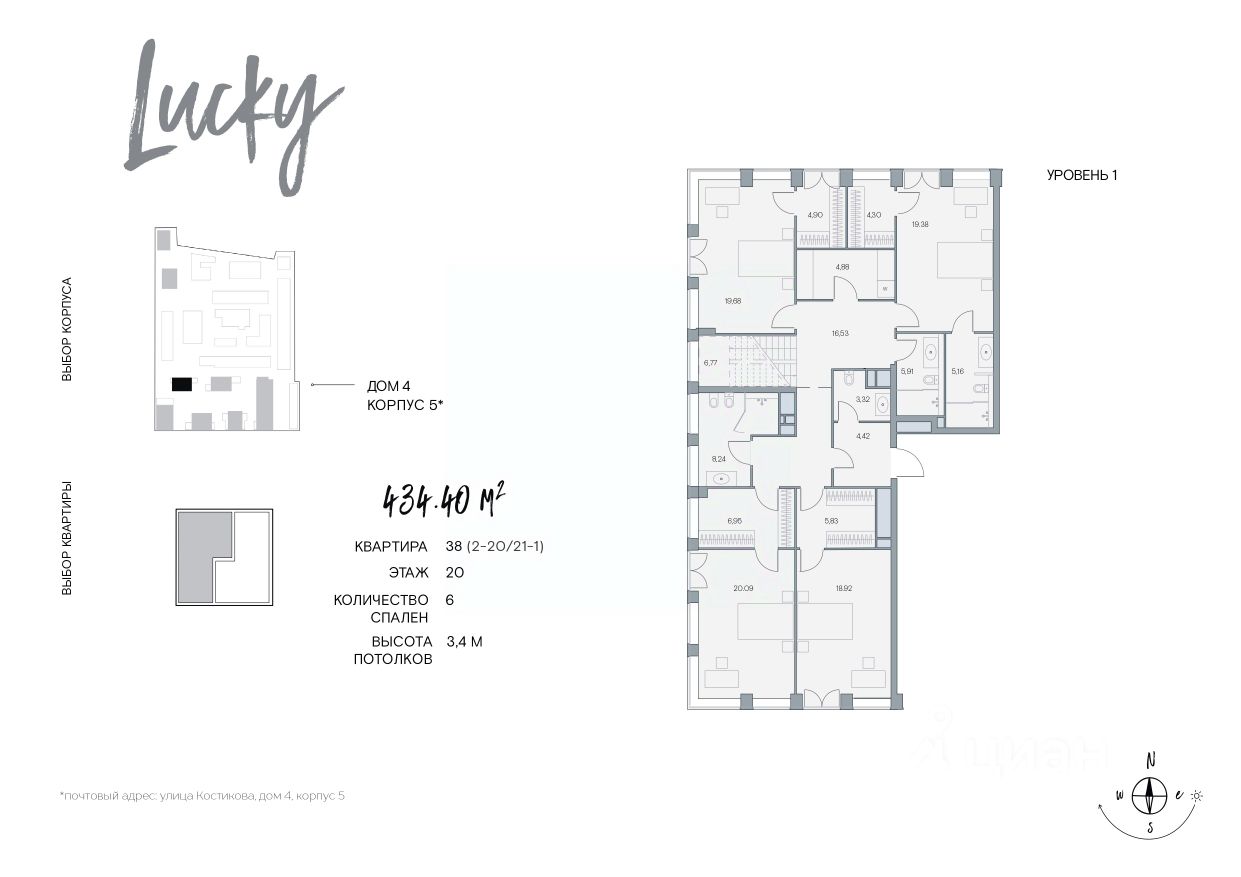 Продаётся 6 - комнатный пентхаус в готовом доме (Корпус 2), общей площадью 434.4 кв.м., на 21 этаже.
