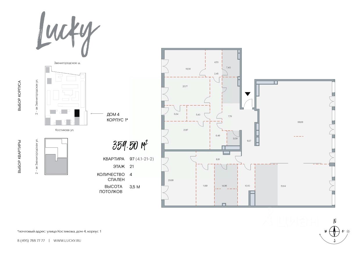 Продаётся 4 - комнатный пентхаус в готовом доме (Корпус 4.1), общей площадью 359.5 кв.м., на 21 этаже.