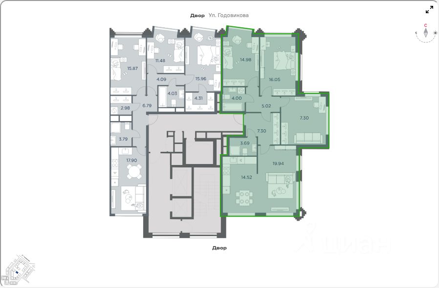 Продаётся 3-комнатная квартира общей площадью 107.00 кв. м на 2 этаже жилого квартала бизнес-класса iLove. Без отделки, 2 санузла. Мастер-спальня с гардеробной. Просторная кухня-гостиная. Ниша для гардеробной.