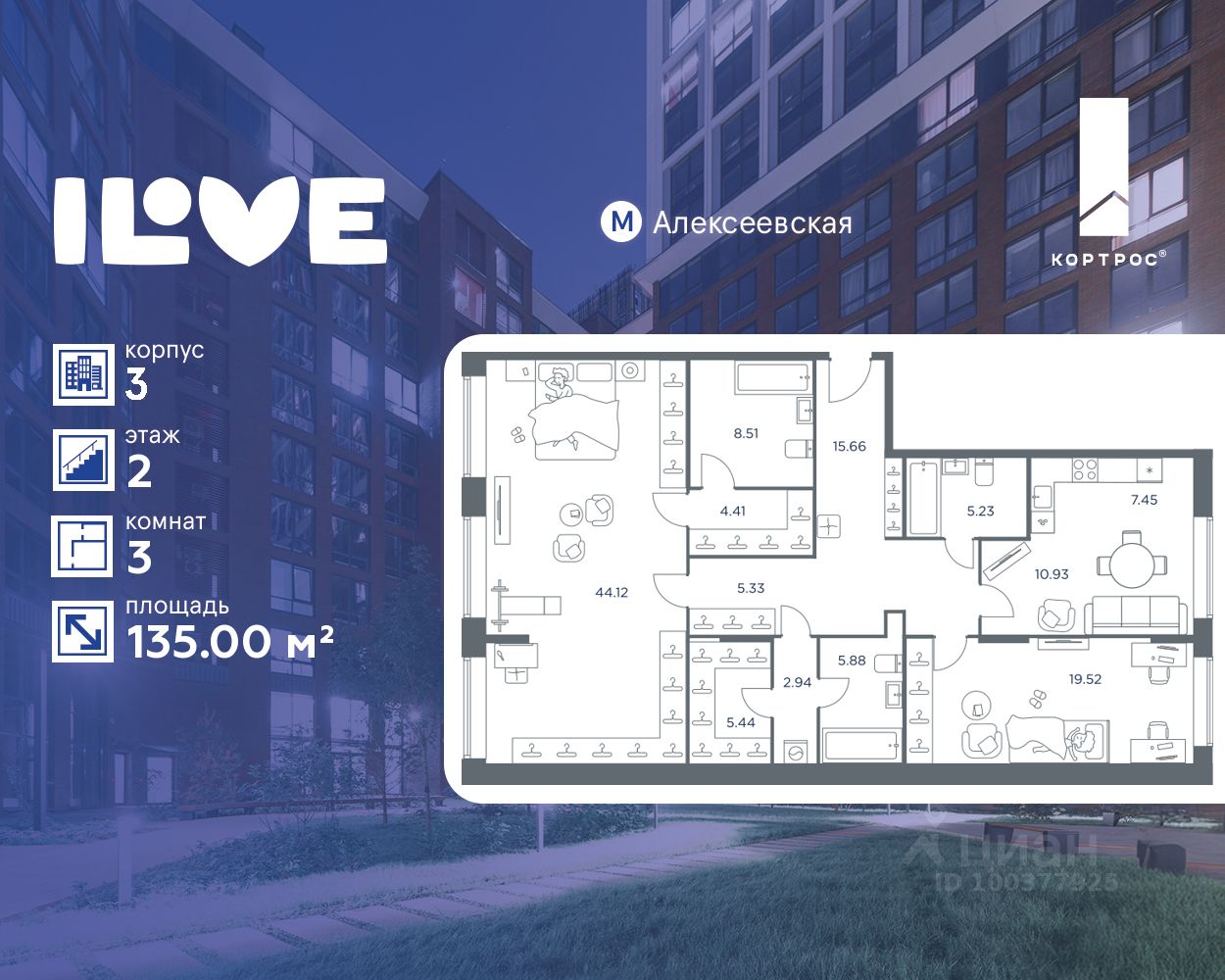 Продаётся 3-комнатная квартира общей площадью 135.00 кв. м на 2 этаже жилого квартала бизнес-класса iLove. Без отделки, 2 санузла. Мастер-спальня с гардеробной. Просторная кухня-гостиная. Ниша для гардеробной.