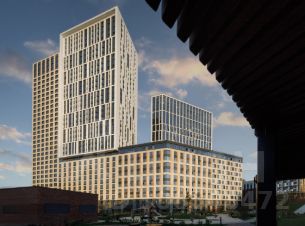 Для удобства жильцов предусмотрены подземная и гостевая парковки, а внутренняя территория комплекса свободна от машин. Благоустроенный двор с детскими и спортивными площадками и дизайнерский подъезд с панорамными окнами создают приятную атмосферу для жизни. В проекте реализуется концепция "город в городе" вся необходимая инфраструктура расположена на первых этажах зданий, запроектирован комьюнити-центр (общественное пространство для отдыха и досуга жителей квартала). В 2025 году на территории жилого комплекса запланировано открытие детского сада.