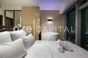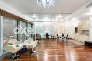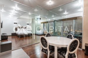 Лот f13019 Жилые апартаменты 104 м2 в башне Санкт-Петербург комплекса Город Столиц. Радиус обзора: Кремль, Красная площадь, Дом Правительства, МГУ, Воробьевы горы, Поклонная Гора. Ближайший вид - на Москва-реку и Кутузовский проспект. Максимально удобная и продуманная планировка, интересные дизайнерский решения. Качество отделки категории люкс: мрамор, гранит, экзотические породы дерева. Использованы самые дорогие и качественные материалы известных мировых производителей. Общая площадь 110 м2, гостиная 35 м2, кухня-столовая 15 м2, две спальни 18 и 16 м2, кабинет 15 м2, домашний кинотеатр, 4 вместительных встроенных шкафа. Два полноценных с/у, оборудованных итальянской сантехникой, с хамамом и трехместной джакузи. Апартаменты полностью готовы к комфортному проживанию, меблированы, оборудованы бытовой техникой, на окнах - римские шторы с электроприводом.