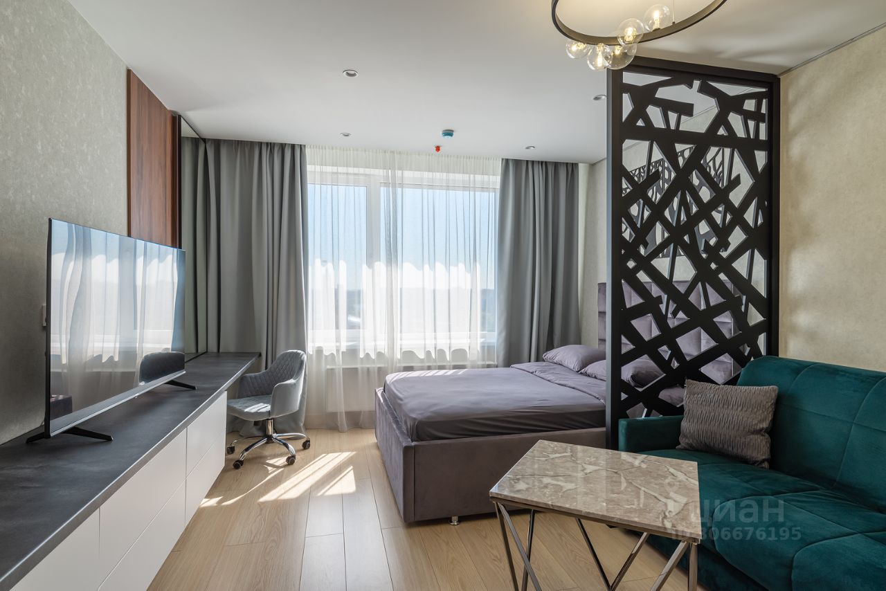 Благодаря грамотному зонированию в номере предусмотрено полноценное спальное место, рабочий стол, кухня, где гости могут приготовить свои любимые блюда и насладиться домашней обстановкой. Стильный лаконичный интерьер и современная обстановка создают приятную атмосферу для отдыха и работы.