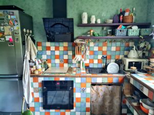 ОТДЕЛКА: Капитальный ремонт. Электропроводка, трубы,батареи заменены. Полы и стены очищали до бетона, выравнивали, сантехническую кабину выкладывали новыми блоками. В коридоре ,кухне и санузле на полу керамогранит с подогревом(всегда сухо и тепло) .В комнатах - натуральный модульный паркет Coswick. Стены отштукатурены, дизайнерские обои.Кухня ручной работы выполнена по индивидуальному заказу из плитки. Встроенная система хранения в коридоре.В комнатах подоконники заменены на столешницу из цельного состаренного дерева(рабочая зона)Везде многоуровневое освещение.