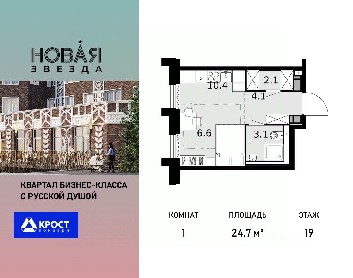 Продаётся 1-к квартира 24.7 кв.м. на 19-м этаже 22 этажного дома, корпус 6 - Резиденция "Хабаровск". Без отделки.